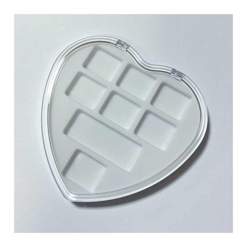 ที่กล่องอายแชโดว์รูปหัวใจผสมหลากสีคือพาเลทเครื่องสำอางอินเทรนด์ อเนกประสงค์ และกะทัดรัดออกแบบมาสำหรับผู้ชื่นชอบความงาม ผู้เชี่ยวชาญด้านการแต่งหน้า และการใช้งานด้านการค้าปลีก- เค้าโครงรูปหัวใจประกอบด้วยมีหลายเฉดสีที่ผสมผสานระหว่างพื้นผิว สีเคลือบ และสีต่างๆทำให้ผู้ใช้สามารถสร้างสรรค์ผลงานได้การผสมผสานการแต่งหน้าที่ไม่มีที่สิ้นสุดสำหรับกลางวัน กลางคืน หรือลุคที่สร้างสรรค์