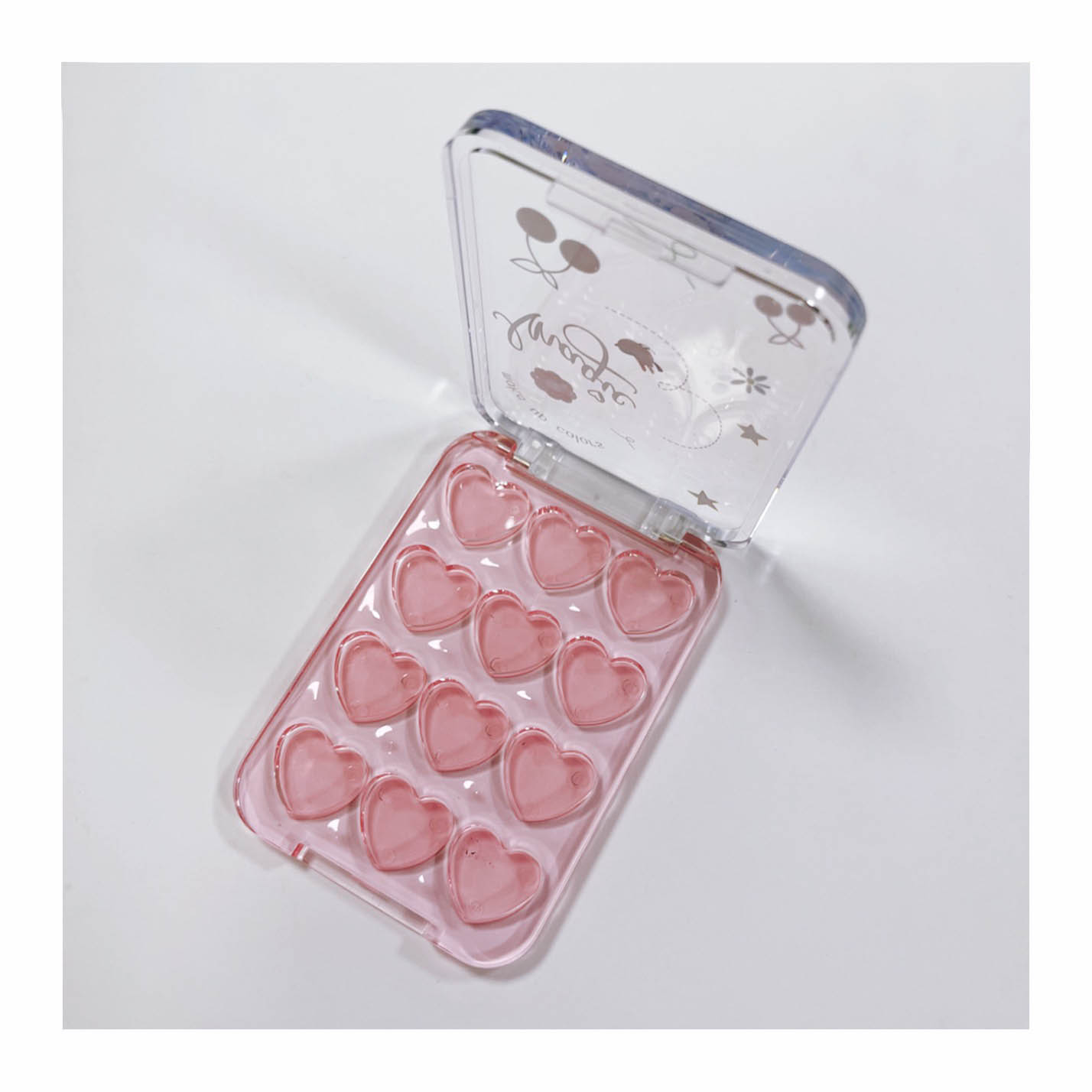 บ้าน > ศูนย์ผลิตภัณฑ์ > พาเลทอายแชโดว์ > กล่องอายแชโดว์รูปหัวใจ ทรงสี่เหลี่ยม 12 ช่อง XQ93006